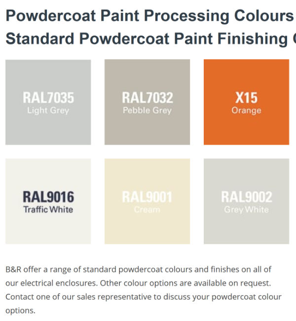 Ral colors are used for information defining standard colors for varnish powder coating and plastics.